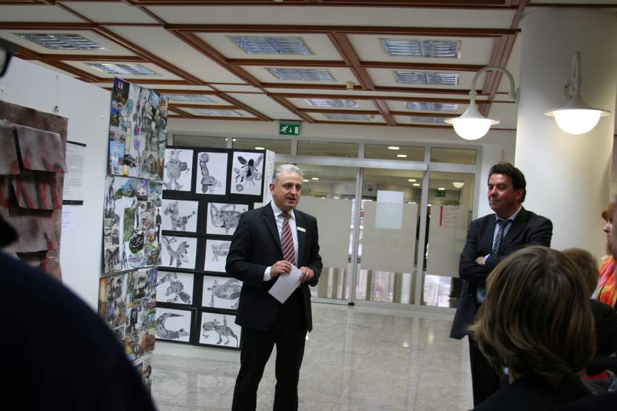 Ausstellungsarbeiten der Schülerinnen und Schüler zu "Kunst trotz(t) Armut"