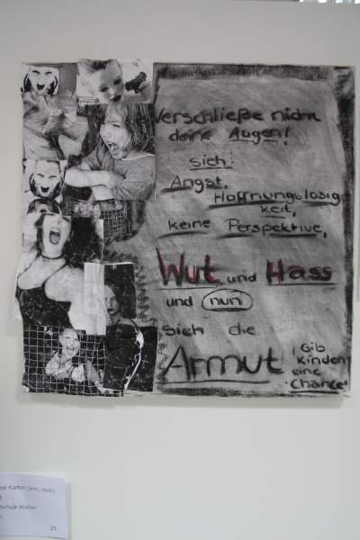 Ausstellungsarbeiten der Schülerinnen und Schüler zu "Kunst trotz(t) Armut"