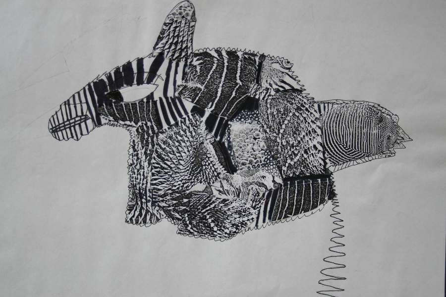 Ausstellungsarbeiten der Schülerinnen und Schüler zu "Kunst trotz(t) Armut"