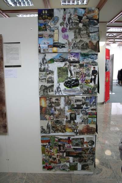 Ausstellungsarbeiten der Schülerinnen und Schüler zu "Kunst trotz(t) Armut"