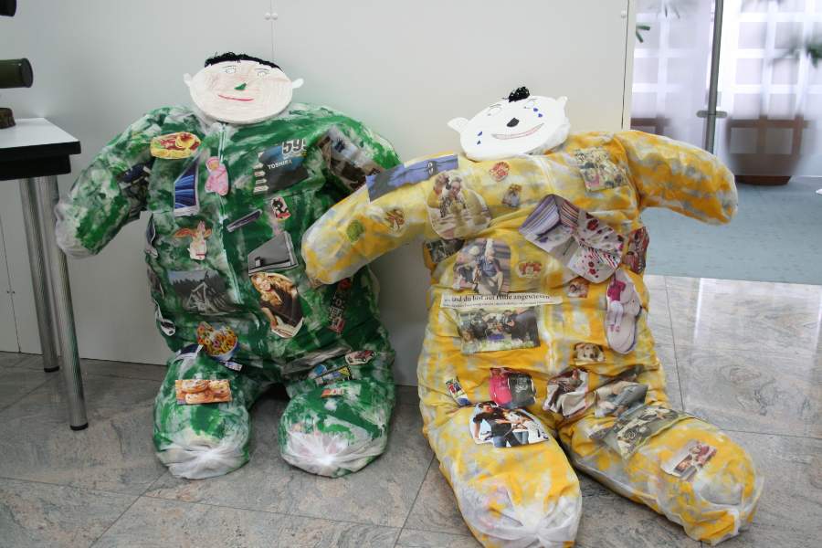 Ausstellungsarbeiten der Schülerinnen und Schüler zu "Kunst trotz(t) Armut"