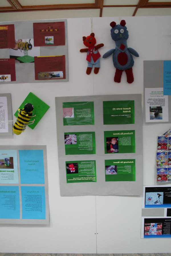 Ausstellungsarbeiten der Schülerinnen und Schüler zu "Kunst trotz(t) Armut"