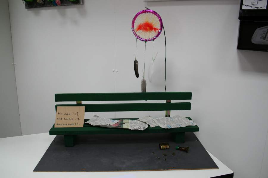 Ausstellungsarbeiten der Schülerinnen und Schüler zu "Kunst trotz(t) Armut"